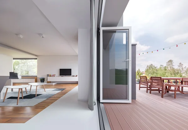 Our aluminium bifold doors include 5-point locking, double deadbolts and full-length interlocks, meeting demanding security standards for commercial and high-end residential projects.